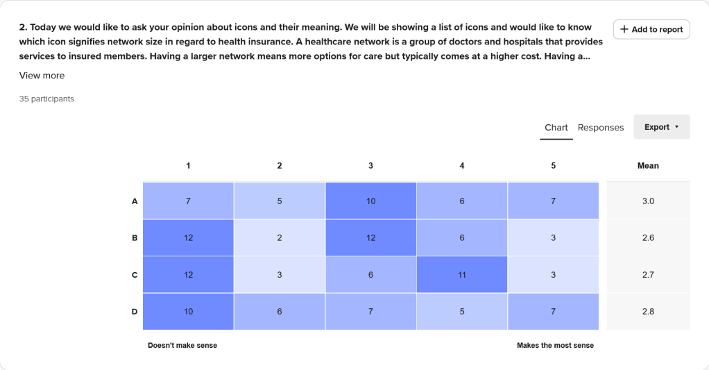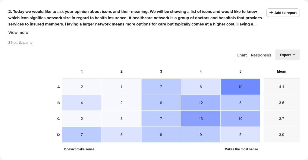 I thought it was a great opportunity to create a survey to find out if people were correctly interpreting the icon used in our health plans to signify network size.