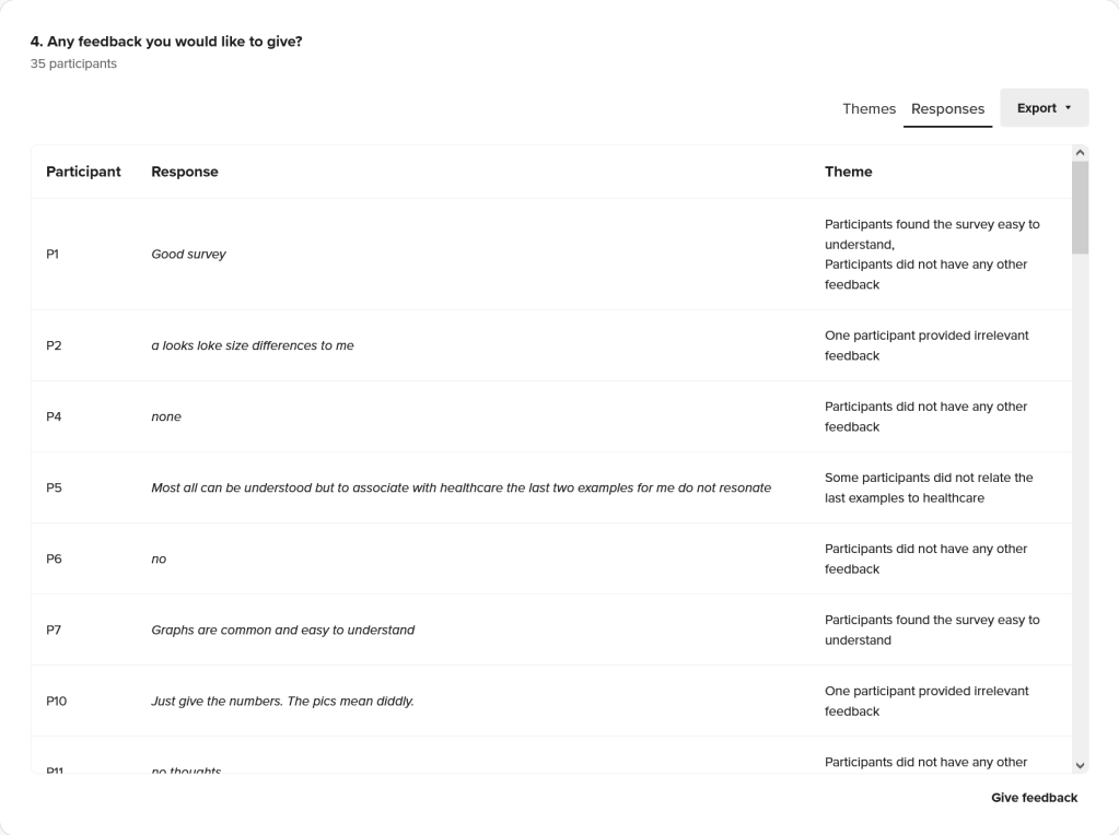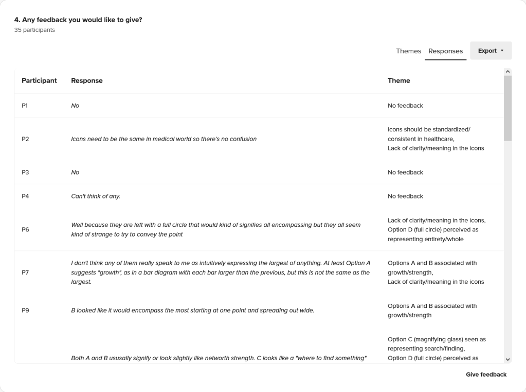 Finally just asking if they had any final thoughts they would like to share. One bit of feedback was that people were sure exactly what icon D was, one person even asking if the pin was a magnify glass.