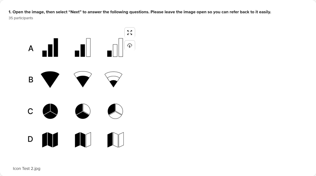 Then I had the testers sort the icons from “Doesn’t make sense” to “Makes the most sense”. Doing this it gave me more options for potentially doing a deeper dive.